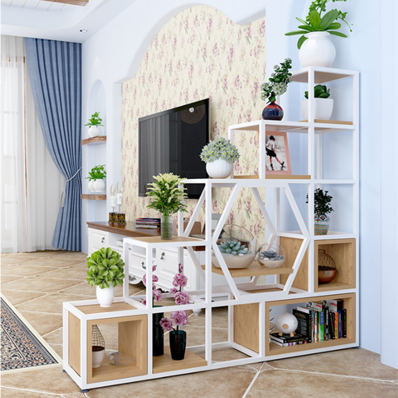 Iron Floor Screen Partition Living Room Shelf Trapezoid Shelf