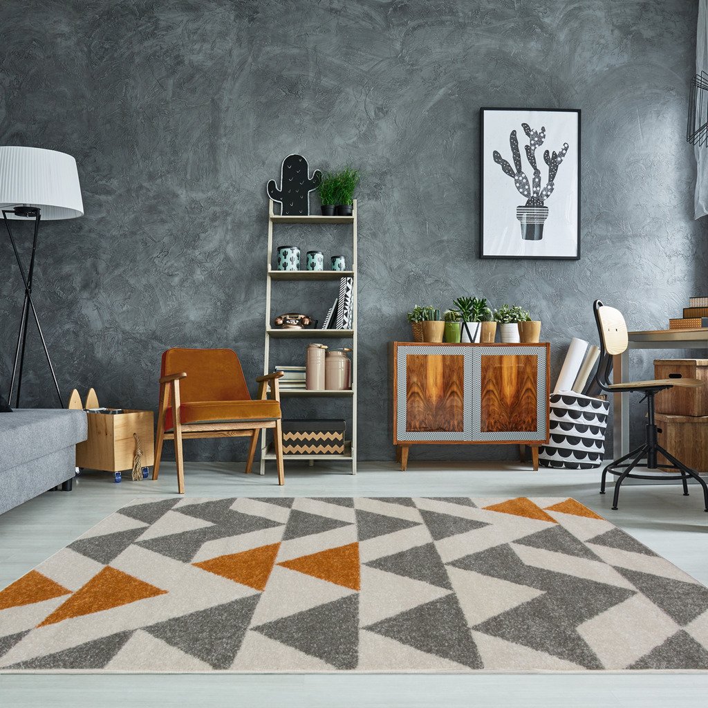 Milan Terracotta Orange Grey Beige Harlequin Triangles Traditional